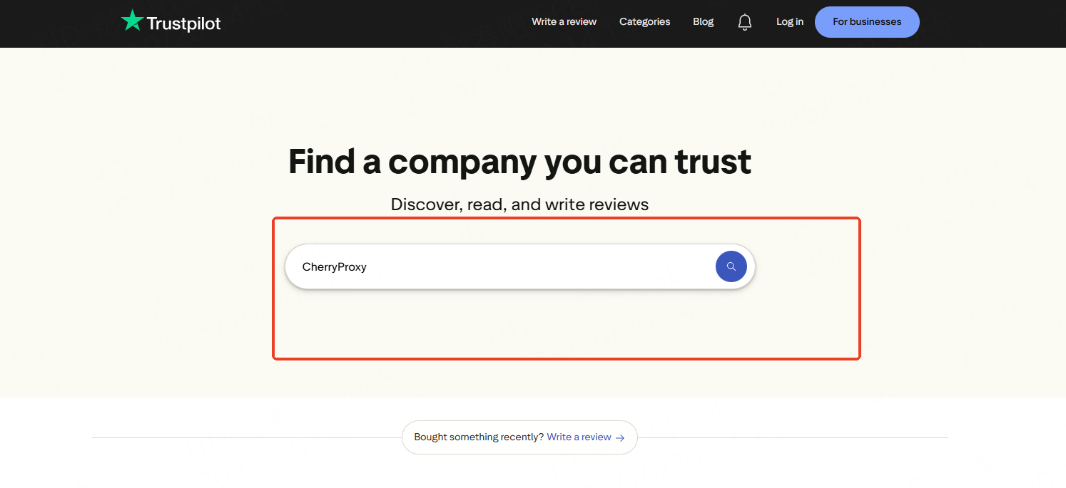 In the search bar on the Trustpilot homepage, type “CherryProxy” and click search.