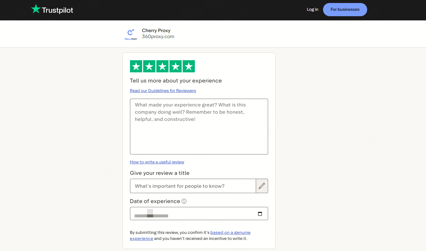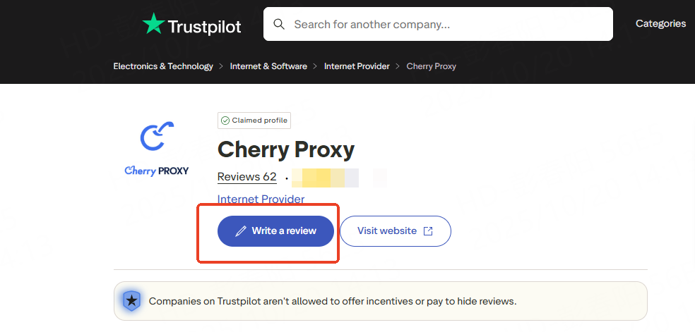 When choosing a proxy service, users often want to reference real experiences from others. Trustpilot is a reliable platform where users can share their opinions and read others' feedback. This not only helps CherryProxy improve but also allows more users to discover its benefits. In this guide, we will show you how to leave a review for CherryProxy on Trustpilot.